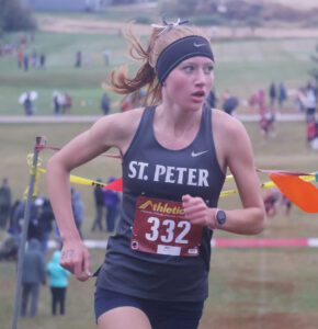 Overall meet winners were Isaac Bemmels of Belle Plaine (boys, 16:03.88) and St. Peter’s Keira Friedrich (girls, 18:07.39). Friedrich has signed to run for the University of Minnesota women’s cross country team.