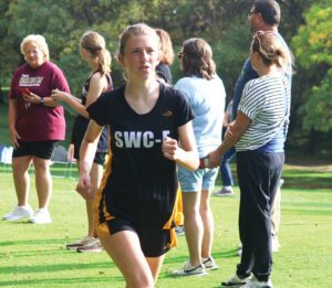 Southwest Minnesota Christian/Edgerton’s Hannah Masselink runs through the middle of the course at the Warrior Invitational on Tuesday, Sept. 23, in Slayton. Masselink earned a pair of third-place finishes at meets last week, including one in Redwood Falls Thursday, Sept. 25. (Star photo by Eric Viccaro)