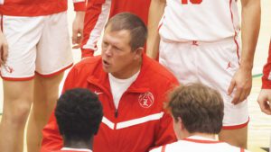 Luverne High School head boys basketball coach John Sichmiller talks to his team during a timeout. (Star photo by Eric Viccaro)