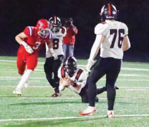 Edgerton Public’s Tanner Thomson attempts to block a possible Jamin Metzger pass. (Star photo by Eric Viccaro)