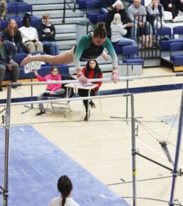 Ireland Draper was tops in the uneven parallel bars (6.3) and floor exercise (7.15), and she also was varsity in the balance beam. Brooklynn Evans was varsity level in the vault, bars and floor.