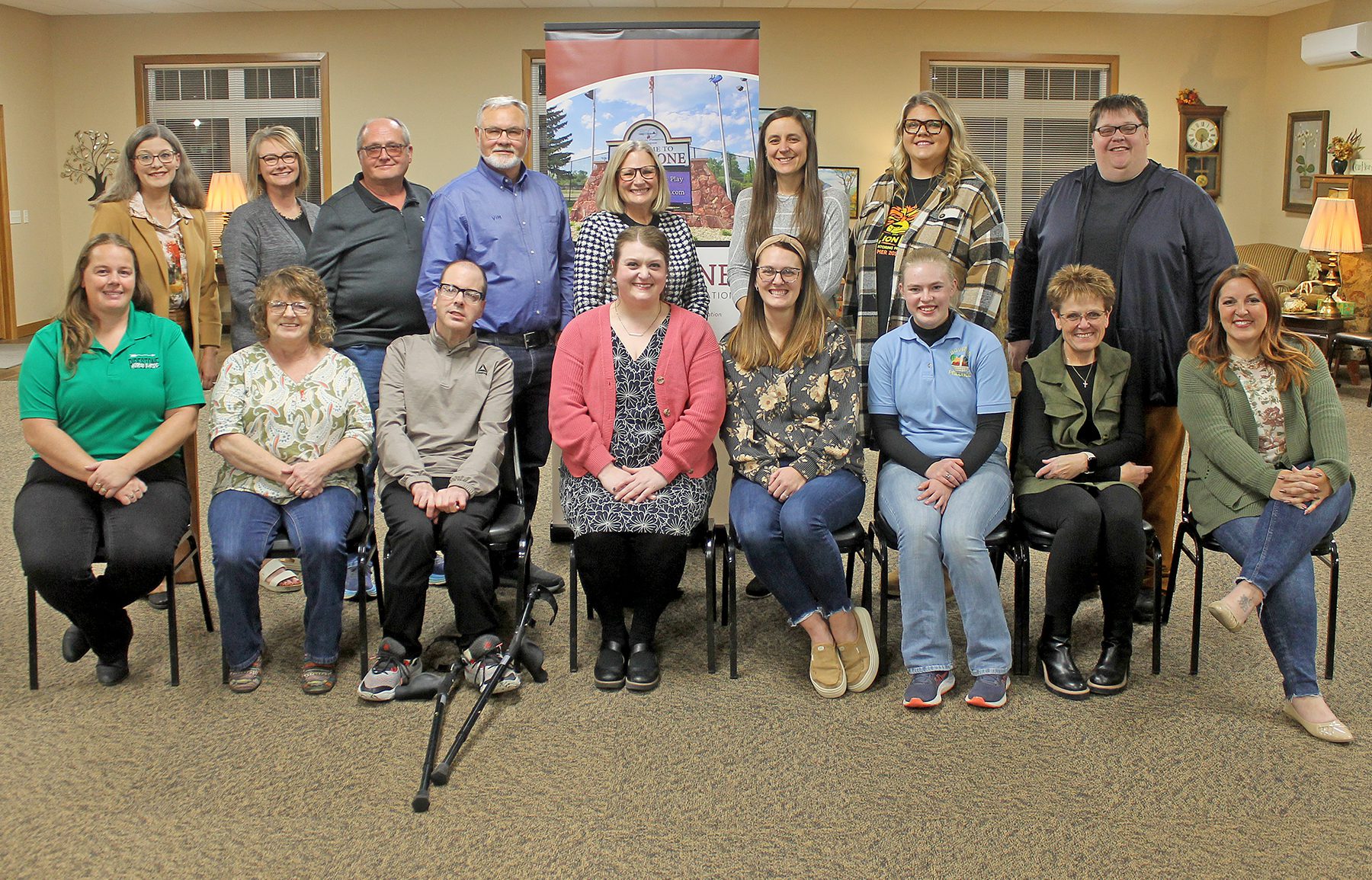 Nov. 6 during its second annual Grant Gala at the Schroeder Center in Pipestone. Pictured are grant recipients (back row, l-to-r) Erica Volkir, executive director of the Pipestone Area Chamber of Commerce; Kim Uilk,
