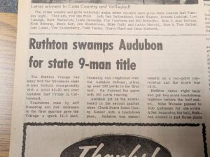 Ruthton was the beneficiary of reduced travel for the state championship game, which was played at Lakeview High School in Cottonwood — long before such grand events transpired at then Hubert H. Humphrey Metrodome.