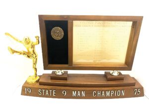 The 1975 9-player football championship was on display at the Pipestone County Historical Society. (Contributed image)